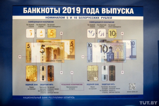 В дизайне обновленных банкнот исключили реквизит «Старшыня Праўлення» и факсимиле подписи, а вместо «2009» указали год выпуска в обращение — «2019». Еще одно изменение — приведены в соответствие с актуальным внешним видом изображения архитектурных сооружений на лицевых сторонах банкнот и указаны их названия. Напомним, на банкноте в 5 рублей изображена Каменецкая башня, а на 10-рублевой купюре — полоцкая Спасо-Преображенская церковь.