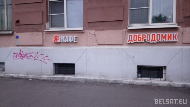 Инспектор во время проверки нашла нарушений на 700 тысяч рублей (около $11 000 – Прим. Belsat.eu). Первым нарушением оказалось граффити на фасаде дома, где находится кафе. Как рассказывает Александра, рисунок появился за день до проверки. Сотрудники кафе тут же обратились в управляющую компанию с просьбой закрасить рисунок.