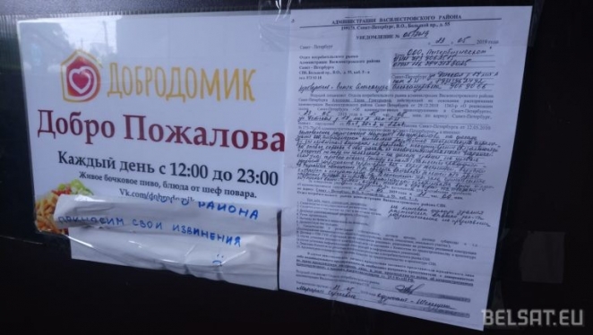 Днем в четверг, 23 мая, в кафе пришла инспекция отдела благоустройства Василеостровского района Петербурга. По словам Александры, сначала чиновники рассказали, что в кафе якобы отравился один из посетителей и потом написал жалобу в администрацию. Чуть позже письменная жалоба оказалась звонком по телефону. На утро 24 мая чиновники уже говорили, что «ДоброДомик» закрыли во время планового рейда по кафе и магазинам.