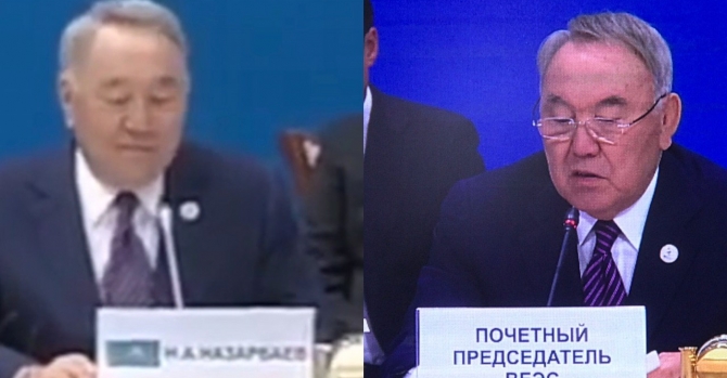Как сообщают журналисты из президентских пулов, между заседаниями ЕАЭС в узком и расширенном составе Нурсултану Назарбаеву успели поменять табличку