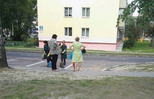 Очевидцы заметили, что сотрудниц общежития ОАО «Нафтан» выгнали на улицу мыть асфальт перед центральным входом в здание. Видимо, предположили, что президент может и к ним нагрянуть как снег на голову... а там грязь. Происходящее снимали на камеры проходящие мимо люди и шутили: «сразу видно, что большой гость едет».