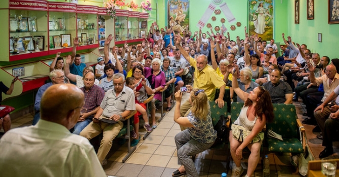 — Это настоящий бандитский налет! Вы за или против (строительства. — Прим. ред.)? — не унимался зал.