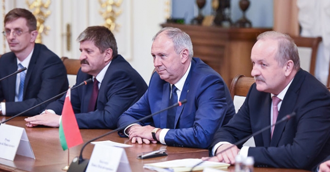 Глава правительства Сергей Румас (в центре) и председатель Нацбанка Павел Каллаур (справа). Фото Анны Пащенко, newsgomel.by