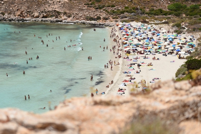 Но жара — хороший повод выбраться на пляж. Остров Лампедуза, Италия, 25 июня 2019 года. Фото: Reuters
