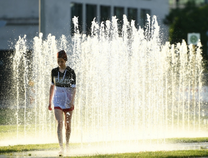 Девушка наслаждается прохладой у фонтана. Брюссель, Бельгия, 24 июня 2019 года. Фото: Reuters