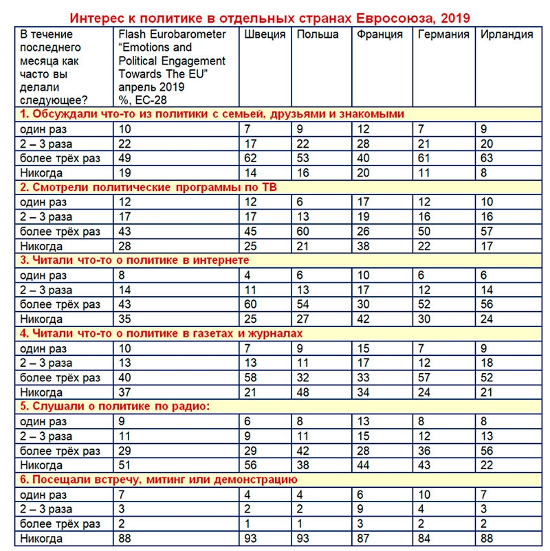 Именно поэтому они обсуждают политику, интересуются политическими новостями, читают и обсуждают политические новости в интернете и в социальных сетях. Люди в успешных странах сознательно инвестируют своё время и внимание в изучение политики и политиков.