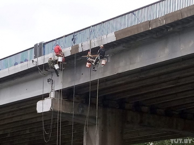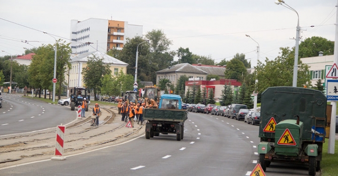 Здесь кладут новый асфальт, ремонтируют трамвайные пути, обновляют краску на домах и мосту, чистят, подметают… Даже канализационные люки покрасили в ярко-зеленый цвет. Эпицентр работ — возле фабрики «Белвест».