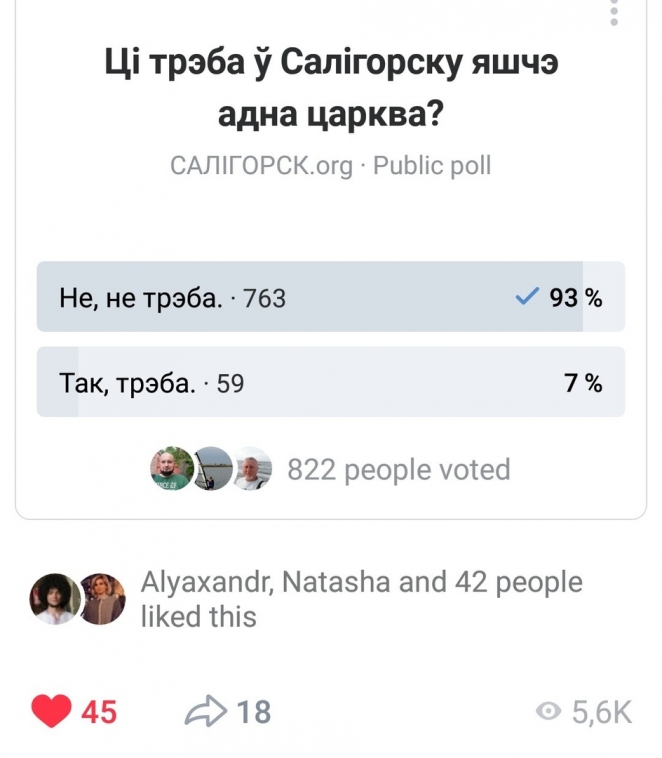 В Солигорске самая большая церковь в Минской области. Спросите любого жителя, как строили собор Рождества Христова. Это секрет Полишинеля. Проводились субботники. Кроме того, людей заставляли писать заявления, что они добровольно жертвуют часть ежемесячного заработка на нужды строительства. Это длилось не один и не два года. В Солигорском районе официально зарегистрировано 20 приходов православной церкви. Разве они переполнены? Еще строят две церкви на улице Набережной.