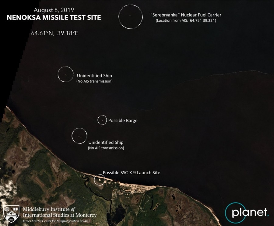 Вполне вероятно, что и в нынешней ситуации речь идет о "Буревестнике", испытания которого, как уже сообщала американская разведка, проходят из ряда вон плохо. Такую версию не исключили, в том числе, и в Институте международных исследований в Монтерее, судя по снимкам с логотипом Planet Labs, производящей и запускающей в космос спутники Dove для непрерывной съемки поверхности Земли.