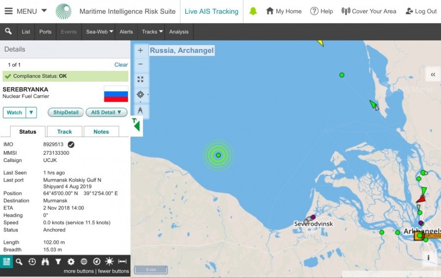 Но. Данные онлайн-мониторинга ряда ресурсов (включая Planet) показывают, что в это время рядом с полигоном находился транспортный танкер "Серебрянка" ФГУП "Атомфлот", предназначенный для приема, временного хранения, транспортировки и выдачи жидких радиоактивных отходов. Т.е. некое ЧП могло случиться либо на борту "Серебрянки", либо все же в результате некоего неудачного испытания ракеты, взрыв которой каким-то образом мог повлиять и на этот танкер.