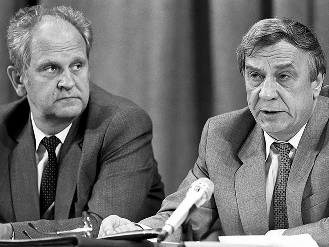 ЗАГОВОРЩИКИ. Глава МВД Борис Пуго (слева) и и. о. президента СССР Геннадий Янаев. Через три дня после задержания Пуго вместе с женой покончат с собой, Янаев проживёт ещё 19 лет