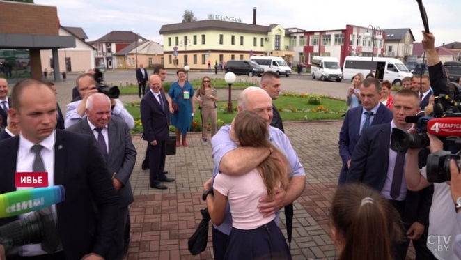 — Мы сначала думали, что он приедет 22 августа, но в среду услышали звук вертолета. Мама говорит: «Вот это сто процентов президент!» Быстро собрались — и кинулись на площадь. Прибежали за 15 минут до того, как он появился на улице. К нему нас сначала не пустили. Мы поговорили с охранником, и нас в какой-то момент позвали. Это все так быстро было! Мы встали рядом, я боялась подходить, но когда президент подошел, вся боязнь улетучилась.