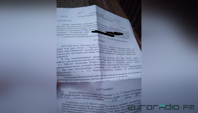 В РОВД на Дениса составили протокол по статье 17.1 Административного кодекса и выписали минимальный штраф — 0,2 базовой величины, т.е. 5 рублей 10 копеек. После его отправили в вытрезвитель, где мужчина провёл ночь.