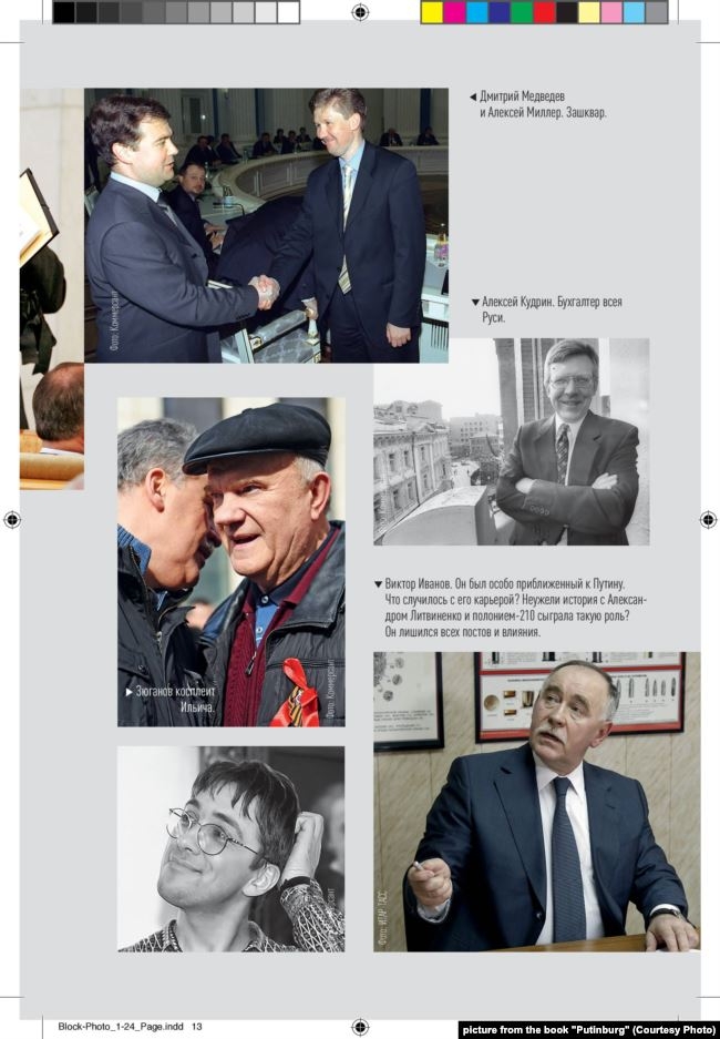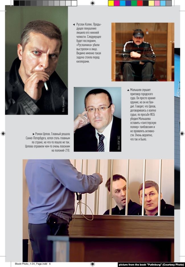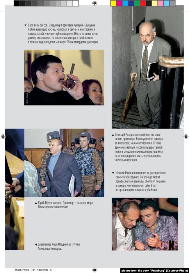 Книга изобилует массой деталей – от того, по каким схемам, по данным автора, разворовывались деньги в Балтийском морском пароходстве, до состава начинки пельменей, производившихся в Петербурге в 1990-х. Там фигурируют как ныне здравствующие, так и ушедшие уже в мир иной (умершие своей смертью или, чаще, убитые). Президент России Владимир Путин, председатель правительства Дмитрий Медведев, вице-премьер Виталий Мутко, лидеры ЛДПР, КПРФ и «Справедливой России» Владимир Жириновский, Геннадий Зюганов и Сергей Миронов, губернаторы Петербурга Анатолий Собчак и Владимир Яковлев, спикер Совета Федерации Валентина Матвиенко, директор Росгвардии Виктор Золотов, председатель Счетной палаты Сергей Степашин, глава «Роснефти» Игорь Сечин и глава «Газпрома» Алексей Миллер, председатель Госдумы Геннадий Селезнев, председатель правления «Роснано» Анатолий Чубайс, депутат Думы Виталий Милонов, входившие в состав питерского ЗАКСа Юрий Шутов и Виктор Новоселов, глава ОПГ Владимир Кумарин, руководитель охранного предприятия Роман Цепов, создатель «ЧВК Вагнера» и «фабрики троллей» Евгений Пригожин, киллер Костя Могила. И многие, многие другие.
