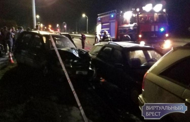 Массовая авария произошла ночью в Бресте, разбито много машин. Говорят, были ночные гонки