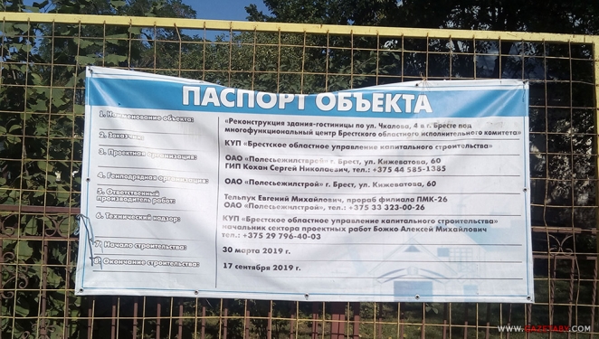 Речь идет о реконструкции старой гостиницы, построенной еще в советские времена между облисполкомом и обкомом КПБ (теперь в здании бывшего обкома заседают городские власти).