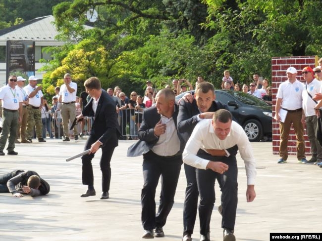 Осенью же прошлого года журналисты задавались вопросом: «Лукашенко не чувствует себя в безопасности даже во Дворце независимости?». Дело в том, что на торжественной встрече с активистами БРСМ высоченный охранник стоял прямо за спиной президента.