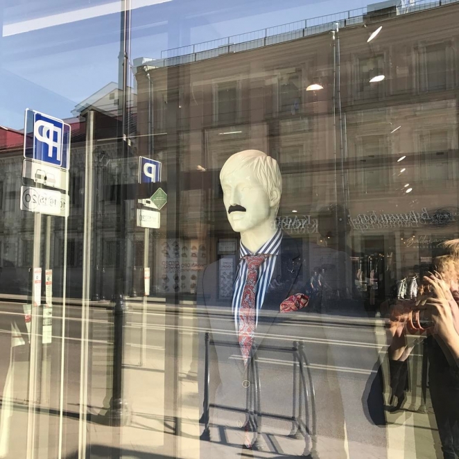 Это фото он подписал «Просто манекен у белорусского посольства»