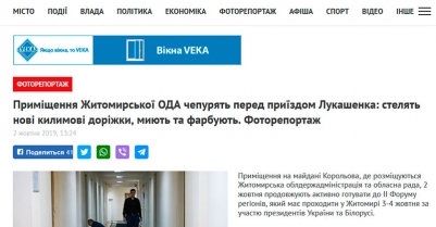 Оказывается, наведение марафета в ожидании больших начальников не чуждо и нашим южным соседям. Как сообщает украинский портал Житомир.info, в помещениях Житомирской областной госадминистрации полным ходом идет подготовка к приезду Александра Лукашенко.