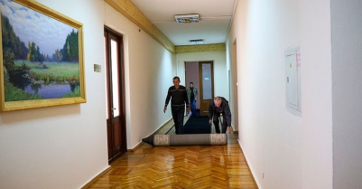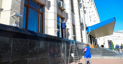 В здании ОГА стелют новые ковровые дорожки, красят, моют, ремонтируют ступеньки на входе в администрацию. Также портал сообщает о пробках в центре города, где в первый день форума разместилась выставка крупногабаритной техники.