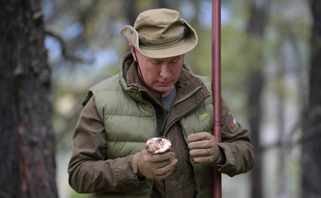 а Владимир Путин сорвал гриб с шишечкой. Интересно, шишечку положили сотрудники ФСО (как когда-то амфоры) или сама заползла?