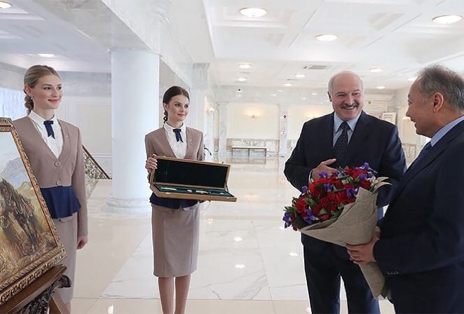 Летом Лукашенко счет 70-летний юбилей сбежавшего экс-главы Кыргызстана хорошим поводом для личной встречи. Глава Беларуси не только высказал в адрес Курманбека Бакиева теплые слова, на и сделал ряд подарков: картину, кортик и букет цветов.