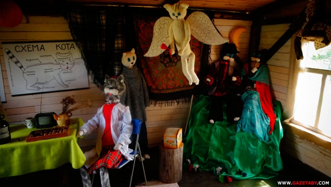 Помогает Елене Олег, местный мастер на все руки. За несколько лет работы музея он научился делать не только деревянные фигуры котов, но и шить ростовые тряпичные куклы.