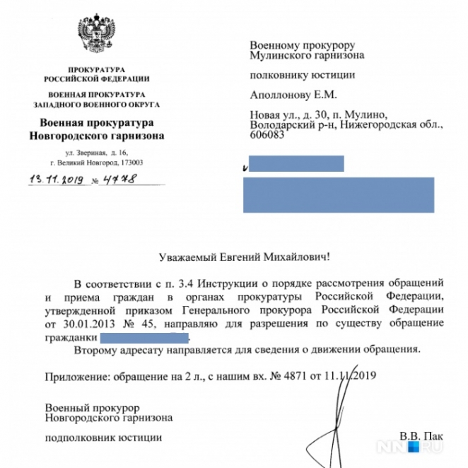 Людмила уже неоднократно писала обращения в Минобороны и Военную прокуратуру в связи с исчезновением её сына. Судя по документам, в Мулино их тоже получали
