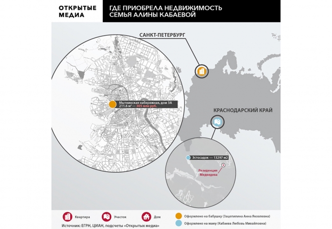 Недвижимость семьи Алины Кабаевой в других регионах. Инфографика «Открытые медиа»