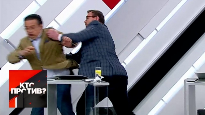 Украинский эксперт Василь Вакаров во время обсуждения украинских проблем заявил, что больше вреда, чем Америка, никто Украине не нанес. Стоявший рядом американский журналист и политолог Грэг Вайнер (он же уроженец СССР Григорий Винников, когда-то эмигрировавший в США, но недавно вернувшийся в Россию) начал Вакарову возражать. Ну и не сдержался горячий украинский парень. Со всей силы пнул обидчика — да так, что тот отлетел на несколько метров к студийной стенке, ударился об нее головой и отключился.