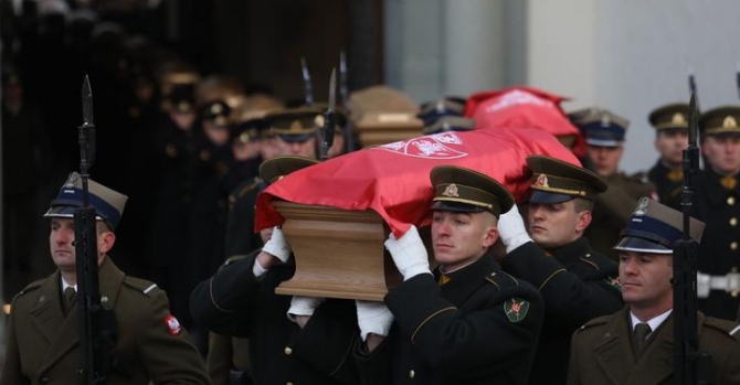 Торжественная церемония прощания началась в 9 утра в кафедральном соборе Вильнюса. Останки 20 повстанцев сюда перевезли из внутреннего двора Дворца правителей Великого княжества Литовского.
