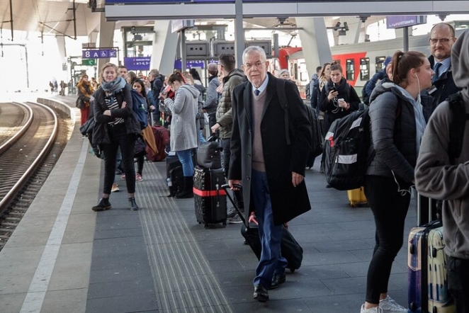 Президент Австрии Александр Ван дер Беллен на перроне в ожидании поезда. Фото: Alexander Van der Bellen / Facebook