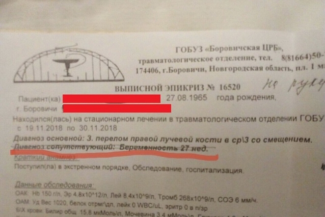 54-летний мужчина пришел туда с переломом руки, а побывав на операционном столе, внезапно оказался… беременным. По крайней мере, именно такой «диагноз» проставили врачи ему в справке. О странном казусе в соцсетях рассказала сестра жены «пострадавшего».