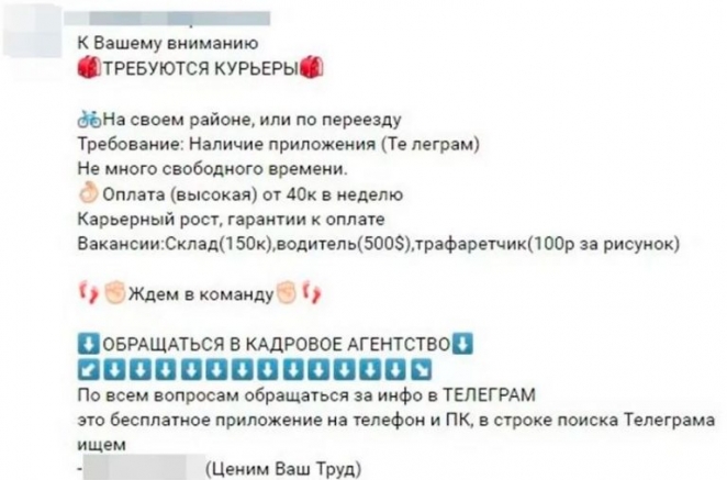 — Не раз сталкивался в делах, когда обвиняемый находил в соцсети находил ссылку, по которой связывался с куратором, если тот еще не был заблокирован, и ввязывался в приключения. Такие ссылки также часто нанесены на стенах домов, на дверях подъездов, на домофонах и пр. Вы наверняка их встречали. Распространяют такие предложения рассылками сообщений в мессенджерах, рекламой и постами в сообществах в соцсетях, спамом на почту, рекламными баннерами и т.д. Друг по соцсетям или случайный знакомый может прислать ссылку.
