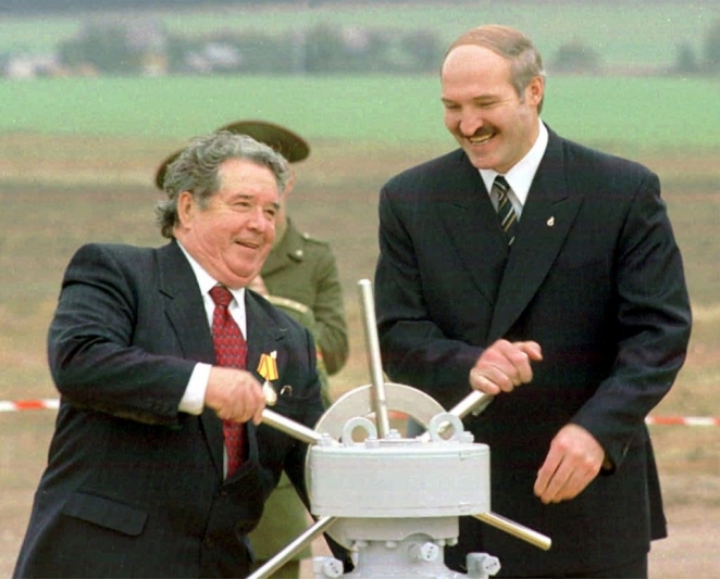 Александр Лукашенко и экс-председатель правления «Газпрома» Рем Вяхирев открывают символический вентиль на газопроводе Ямал-Европа, 1999 год. Фото Виктора Толочко / ИТАР-ТАСС
