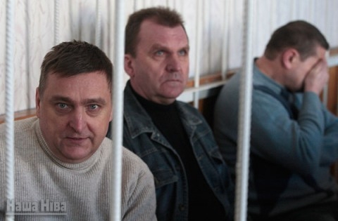 Автухович, Осипенко и Козлов во время суда. Фото: Юлия Дорошкевич, «Наша Ніва»