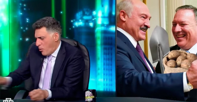 Российский юморист не удержался от шуток о картофеле. Его устами Помпео приехал в Минск «не картошку копать», хоть Александр Григорьевич «готов был организовать это мероприятие в любую минуту».