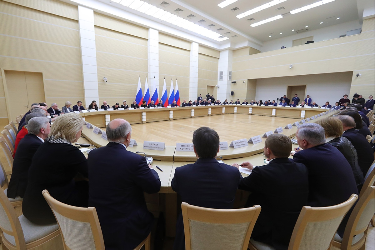 Встреча Владимира Путина с членами рабочей группы по подготовке предложений о внесении поправок в Конституцию РФ, 16 января 2020 года. Фото: Михаил Метцель / ТАСС