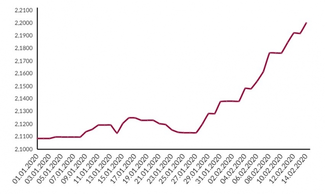 Курс доллара на торгах Белорусской валютно-фондовой биржи растет с 26 января. Не стали исключением и торги 13 февраля. За это время доллар подорожал с 2,113 рубля до 2,2001, или больше, чем на 4%. При этом уже были побиты максимумы прошлого года.