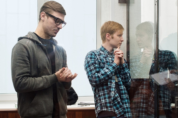 Фигуранты дела «Сеть»* — Андрей Чернов (слева) и Михаил Кульков (справа) в суде. Фото: Максим Буданов / Коммерсантъ