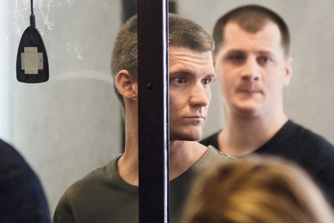 Фигуранты дела «Сеть»* — Максим Иванкин (справа) и Дмитрий Пчелинцев (слева) в суде. Фото: Максим Буданов / Коммерсантъ
