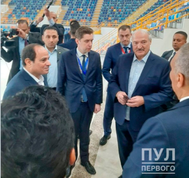 Также об этом написал телеграм-канал «Пул первого» (вероятно, принадлежащий пресс-службе Лукашенко): «Президенты посетили строящийся в Египте ледовый дворец (да, в Африке они тоже есть!). Лукашенко поделился опытом строительства аналогичных спортивных центов в Беларуси». Прикрепив такую фотографию.