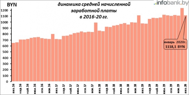 Но в целом зарплаты в Беларуси номинально увеличиваются из года в год. Так, в сравнении с январской зарплатой 2019-го, январская средняя зарплата 2020-го больше на 13,9%, а в сравнении с январской 2018-го — на 30,2%!