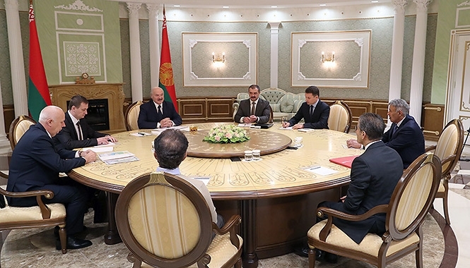 Александр Лукашенко, Виктор Лукашенко и Зеленкевич на встрече с главой арабской компании «Emaar Properties», Минск, ноябрь 2019 года. Фото: president.gov.by