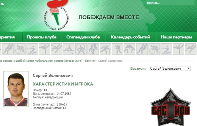 Кроме всего этого Зеленкевич еще и игрок любительской хоккейной команды «Бастион» Президентского спортивного клуба. В «Бастионе» также играет и Виктор Лукашенко.