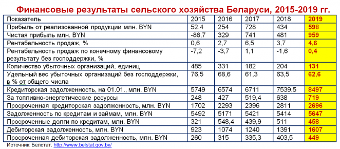 Вот так открывается ларчик под названием «Спасение белорусского аграрно-промышленного комплекса». Денег нет – так давайте по закону разрешим должникам не отдавать долги. По состоянию на 01.01.2020 года кредиторская задолженность сельского хозяйства составила ~BYN8,5 млрд, просроченная – BYN2,7 млрд. Даже просроченные долги перед поставщиками и партнёрами в 2,8 раза больше, чем вся заработанная за год чистая прибыль данного сектора. Долги по кредитам – это ещё BYN5,65 млрд. И всех этих денег остро не хватает колхозно-совхозному по своей сути сельскому хозяйству страны. Поэтому власти поверх всех управленческих безобразий, наделили с/х организация правом не платить по долгам, т. е. «кидать» или обманывать поставщиков.