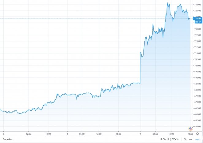 - доллар стал стоить 75 российских рублей;