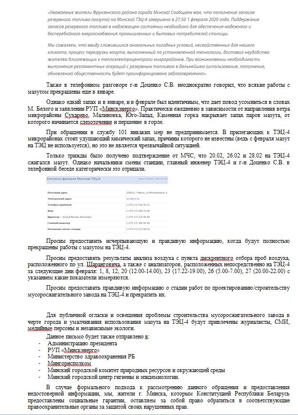 Против строительства завода местные жители собрали 250 сообщений и 2 марта прислали их «куда только можно»: СЭС, Минскэнерго, охраны природы, Министерство здравоохранения.