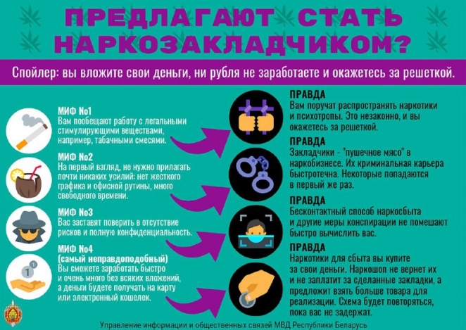 В случае, если вам предлагают стать закладчиком или вы увидели соответствующую рекламу, сообщите об этом по телефону милиции 102.