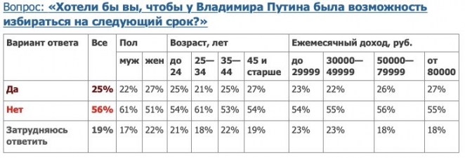 В данном случае наш стратег перехитрил сам себя - легитимность его попытки узурпировать власть таким грубым способом близка к нулю, так как четверть согласных - это классическая сервильная треть-четверть, которая вообще всегда согласна с любой нынешней властью и своего мнения не имеет. В ту же секунду, когда новая власть объявит это решение Путина преступным, эти же самые 25 процентов будут категорически согласны с мнением новой власти. Причем без малейшей рефлексии по поводу предыдущего противоположного мнения.